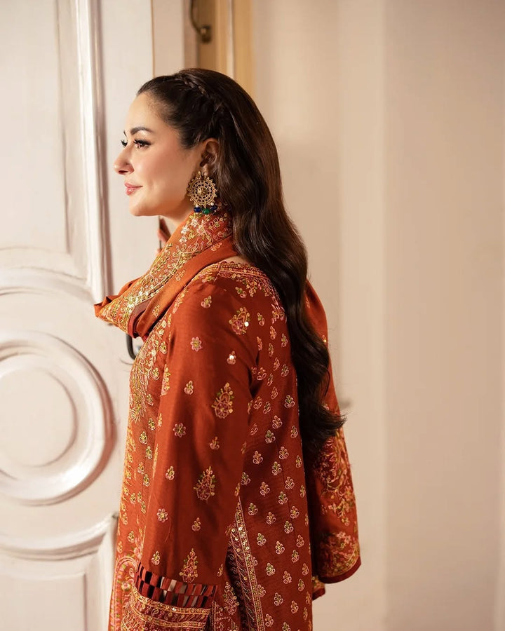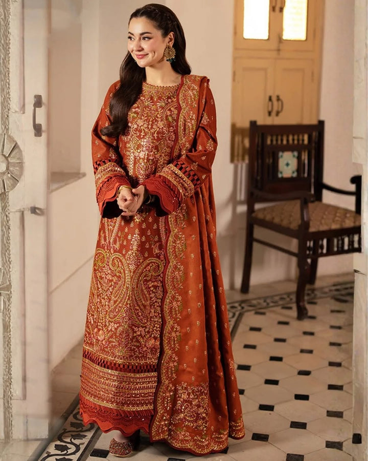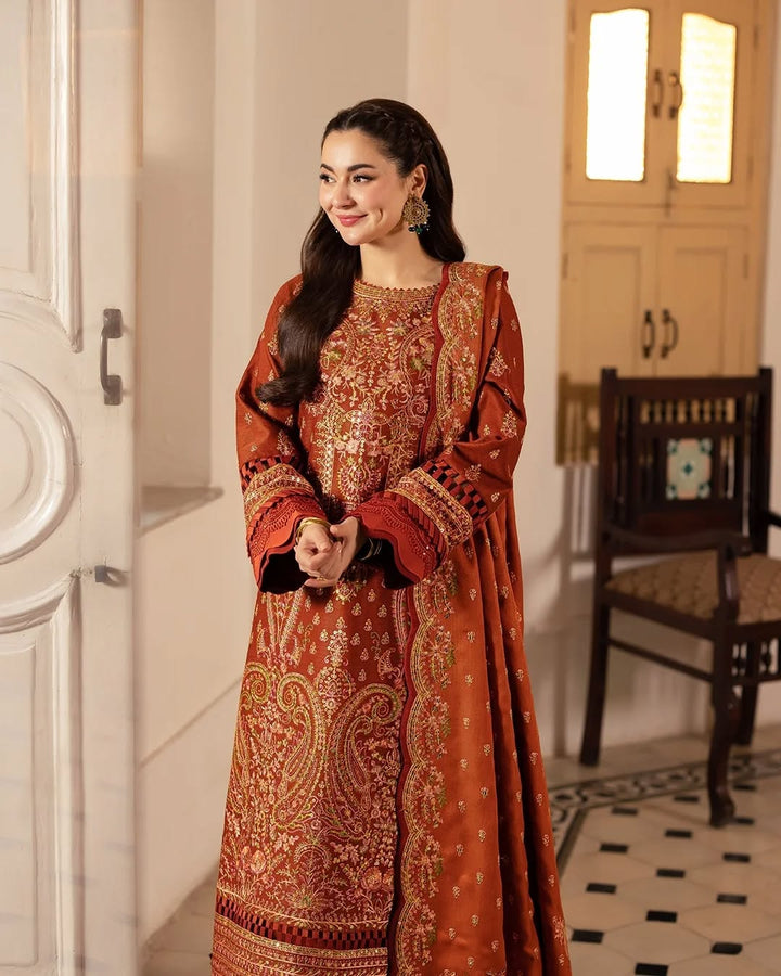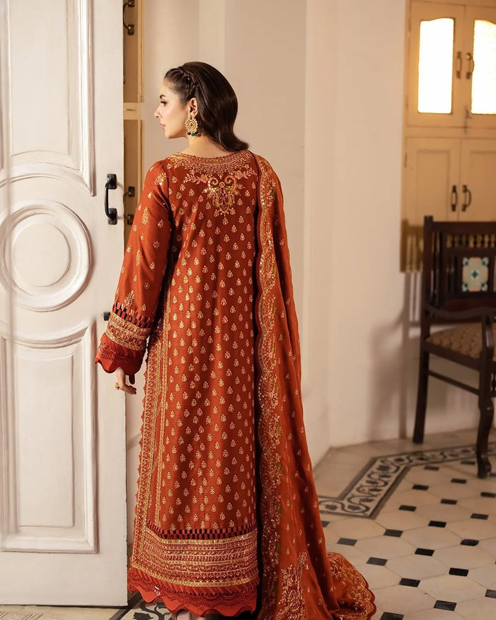 ASIM JOFA-3PC KARANDI SEQUIN EMBROIDERED SHIRT WITH KARANDI EMBROIDERED SHAWL AND TROUSER -BIC-4330