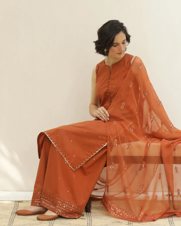Rust | 3-Piece Stitched Lawn Eid Arrival